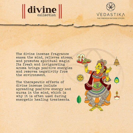 VEDASTIKA Divine Aroma Therapy Premium Fragrance Long-Lasting Charcoal Free Incense Sticks Non-Allergic 180 Handmade Agarbatti for Pooja n Meditation with Burner Stand_Pack of 4