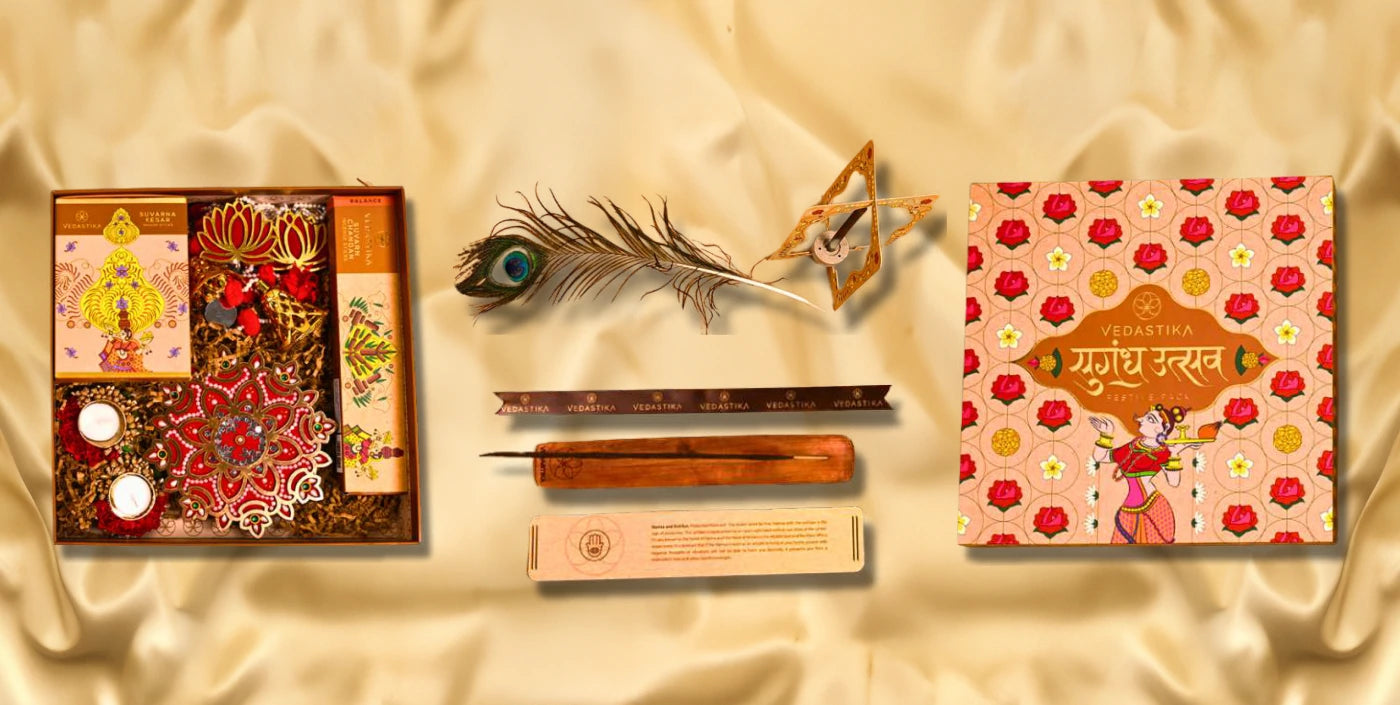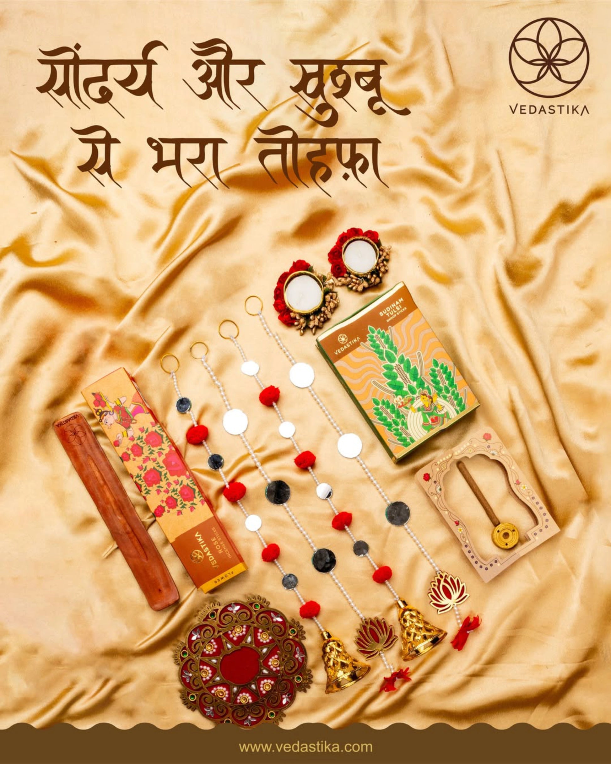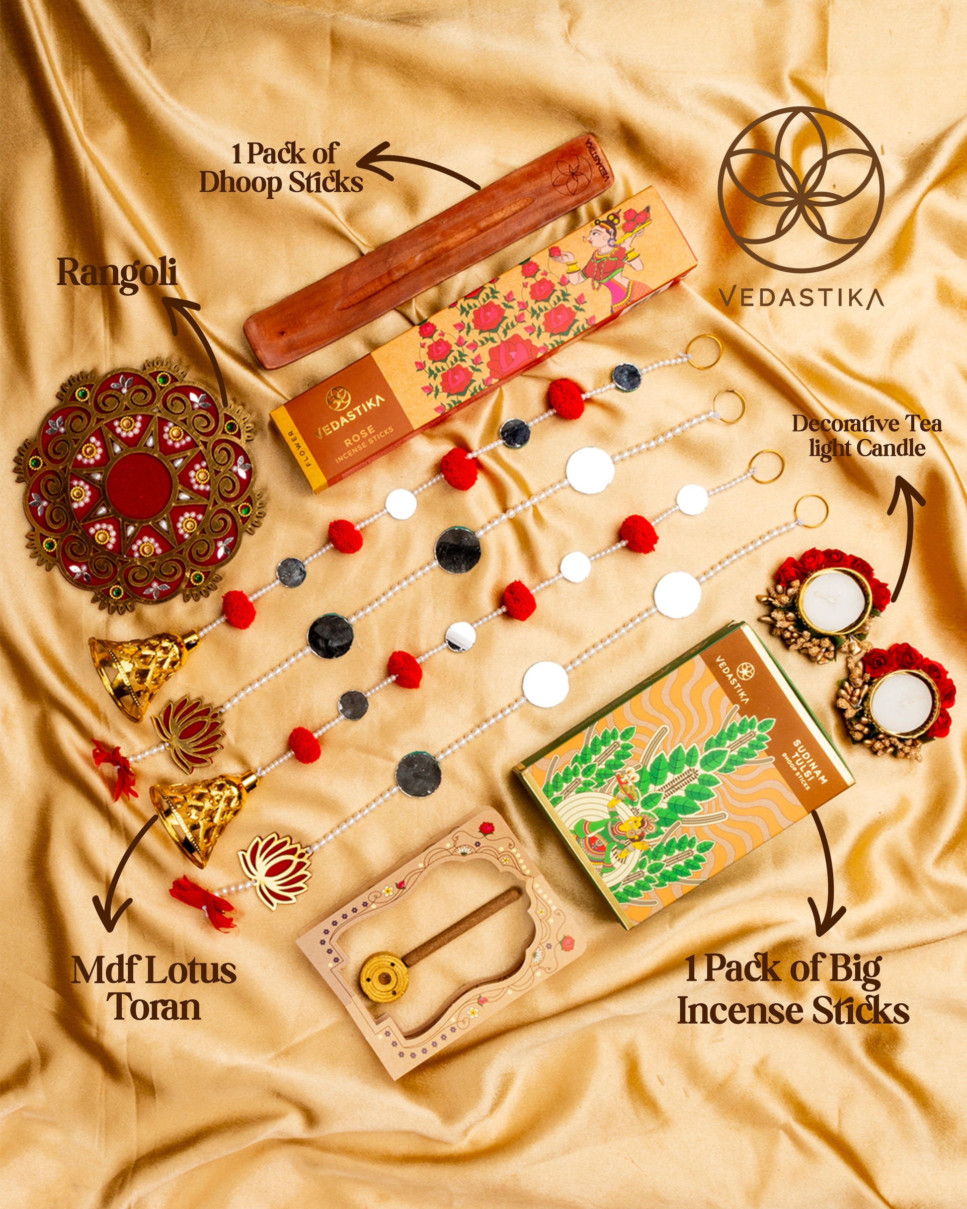Each Decor Delight Hamper includes torans, rangolis, decorative candles, incense, and morpankh — crafted to elevate festive décor. A perfect blend of beauty and divinity, bringing fragrance and light to every celebration.