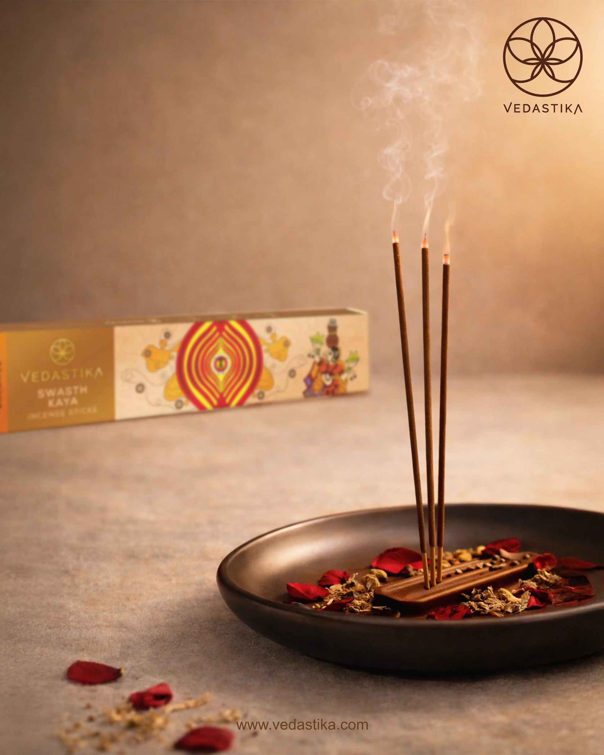 1. Spiritual Connection: The incense sticks are presented as a means to connect with the spiritual world, drawing from the ancient roots and wisdom of the Vedas, which means "knowledge." The use of the Swastika symbol adds to the religious and cultural significance.