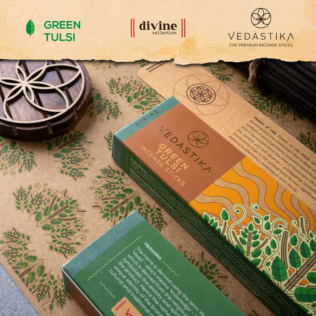 1. Spiritual Connection: The incense sticks are presented as a means to connect with the spiritual world, drawing from the ancient roots and wisdom of the Vedas, which means "knowledge." The use of the Swastika symbol adds to the religious and cultural significance.