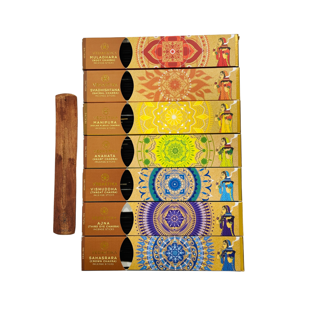 VEDASTIKA Healing Collection Premium Fragrance Long-Lasting Charcoal Free 140 Incense Sticks Non-Allergic Handmade Agarbatti for Pooja & Meditation with Burner Stand_Pack of 7
