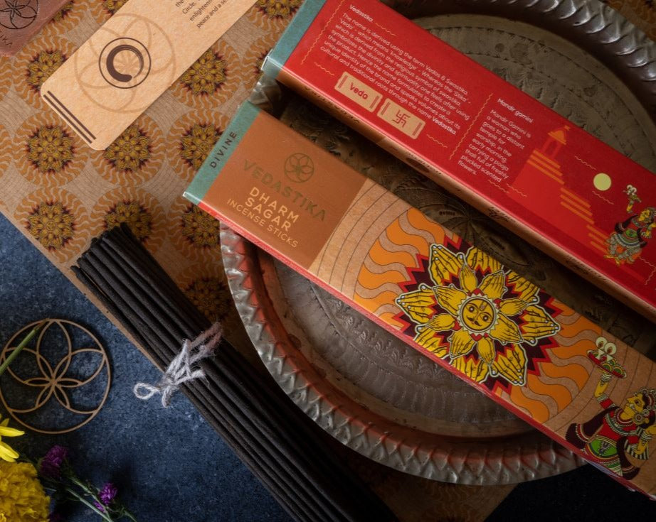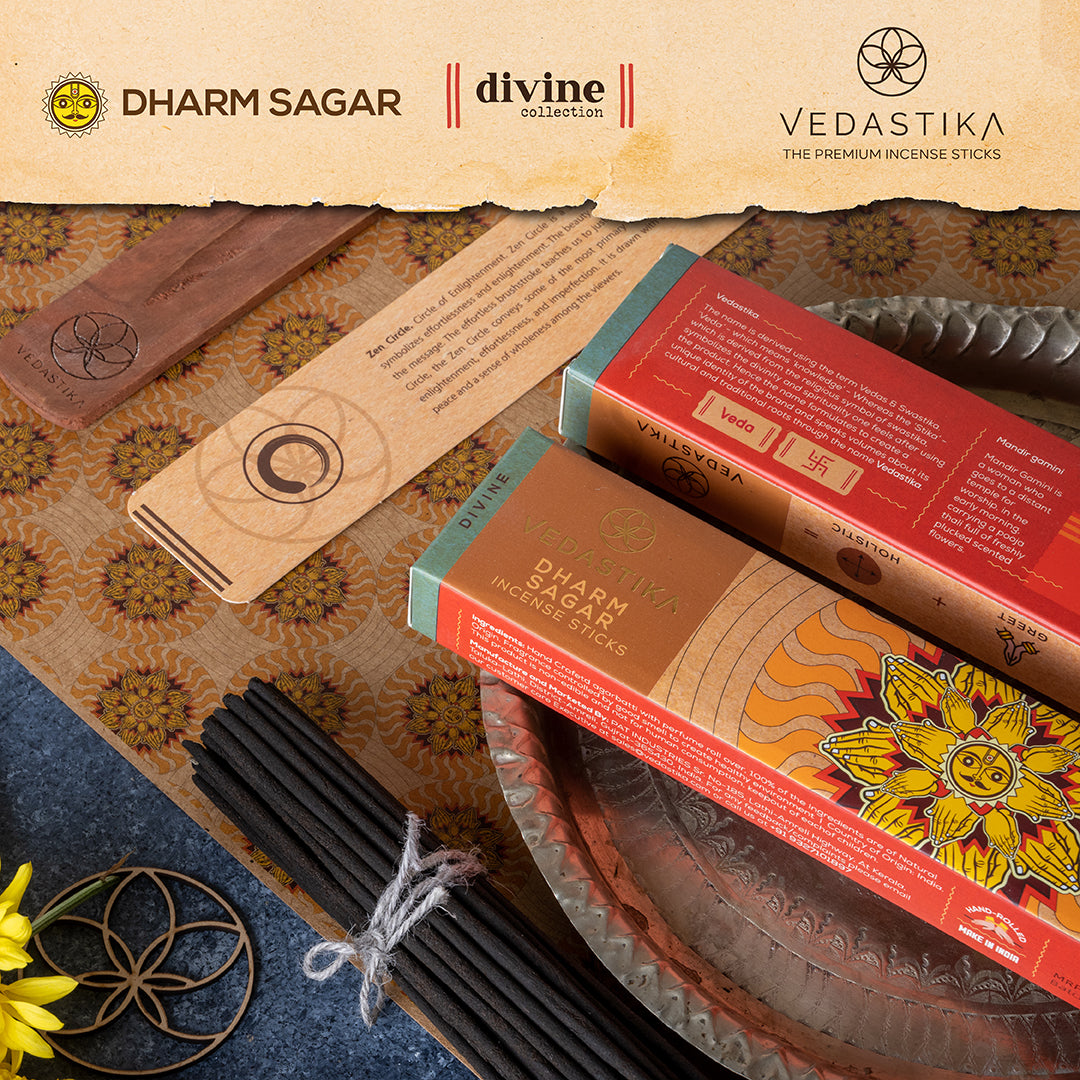 1. Spiritual Connection: The incense sticks are presented as a means to connect with the spiritual world, drawing from the ancient roots and wisdom of the Vedas, which means "knowledge." The use of the Swastika symbol adds to the religious and cultural significance.